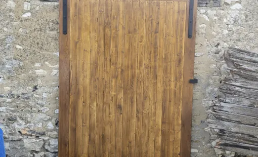 Houelle menuiserie a effectué la fabrication d'une porte fermière extérieure sur rails coulissants en respectant la volonté du client.